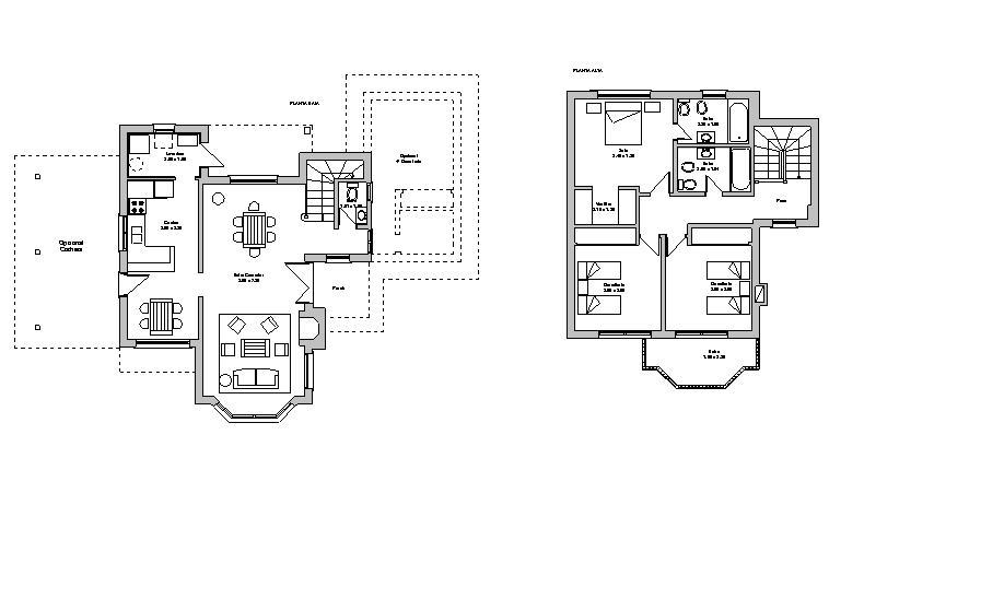 Calefacción por suelo radiante (opcional radiadores de aluminio) con colectores, llaves regulables y termostato de ambiente.