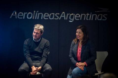 Carreras junto al ministro de Turismo Matías Lammens; de Transporte, Alexis Guerrera y el presidente de Aerolíneas Argentinas, Pablo Ceriani, participaron de la presentación que realizó
