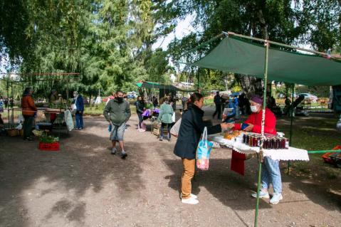 Productores de la Feria Franca del Nahuel Huapi continúan exponiendo sus productos todos los sábados en la plaza Belgrano. Si el clima lo permite, la temporada se extenderá hasta mediados de abril.