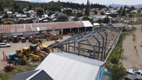 Esta semana se inició el montaje de la estructura del Polivalente que el Municipio está construyendo en la sede de la Delegación Sur, en Ruta 40 y Quaglia.