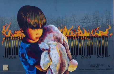Relatando la continuidad de la obra comentó que "sabemos que muchos de estos incendios se originaron a raíz de intereses inmobiliarios. Es por eso que contraponiendo a ese código está el nene que abraza su peluche tratando de preservar su muñeco del peligro que es el fuego. Buscamos que las personas puedan reflexionar sobre lo que vamos a dejar para nuestros nietos".