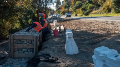 La obra de integración urbana de la avenida Bustillo en Bariloche avanza en la colocación de gaviones y capa de nivelación de hormigón.