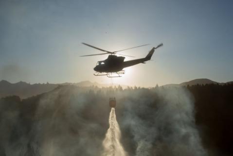 En el lugar trabajan brigadistas de Parques Nacionales, SPLIF y el Sistema Nacional de Manejo del Fuego con un helicóptero. Además personal de la CEB, debido a las cercanías de las llamas al tendido eléctrico, ubicadas al costado de la ruta.
