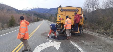 Continúan las tareas de bacheo en la ruta camino a El Bolsón