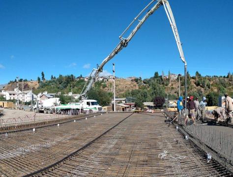 Después de eso hay que ejecutar el acceso al puente desde la calle Ñireco y a continuación la capa de rodadura o de desgaste que va sobre todo el puente, es lo que pisarán los vehículos cuando circulen (o “rueden”) sobre él y por eso se la conoce con ese nombre, es lo que se desgasta con el uso y se renueva cada cierta cantidad de años sin tener que tocar la estructura del puente.