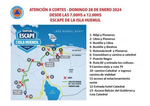 Cortes de calles intermitentes este domingo debido al Escape de la Isla Huemul