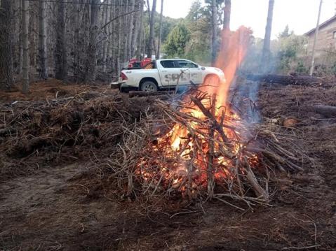 Durante los trabajos de quema, es necesario permanecer en el lugar para controlar el fuego, como también tener herramientas y fuentes de agua. En el caso de que se produzca con descontrol del fuego, dar aviso de manera inmediata.