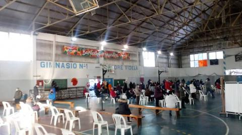 Estaba previsto que las puertas del Gimnasio Municipal 1 se abrieran a las 8,30 pero varios minutos antes la gente comenzó a formar una sola fila para esperar su momento. Carnet de vacunación en mano, el personal de Salud chequeó la fecha en la que había sido aplicara la primera dosis y que fueran mayores de 60 años de edad.