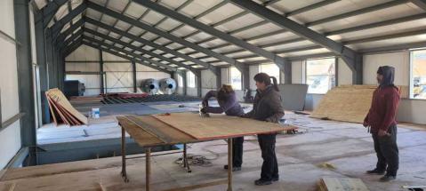 Se continúa trabajando en la parte interior del Polivalente que el Municipio está construyendo en la sede de la Delegación Sur, en Ruta 40 y Quaglia.