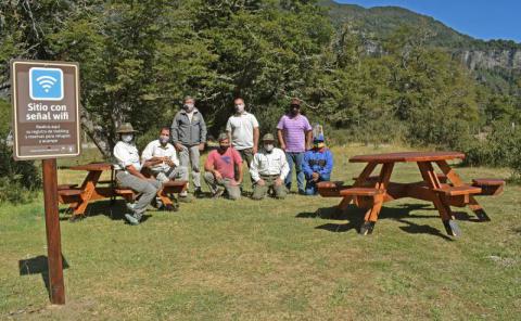 La Intendencia del Parque Nacional Nahuel Huapi informó que ya se encuentra en funcionamiento un nuevo punto con servicio de WiFi libre y una torre para recarga de celulares en el centro de informes de Pampa Linda - circuito Cerro Tronador. En el lugar también se instalaron dos módulos de mesas de madera con bancos, que fueron confeccionadas por la cooperativa “El Semillero – Vientos de Libertad” que es un espacio de encuentro de jóvenes y adolescentes con distintas propuestas socioeducativas y sociolaborales.
