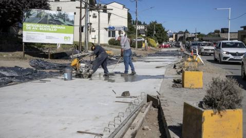 La obra de integración urbana de la avenida Exequiel Bustillo finalizó con los trabajos de hormigonado en el cruce de las calles Salta y Avenida San Martín, facilitando la circulación vehicular en la zona del monolito y el acceso al centro de la ciudad.