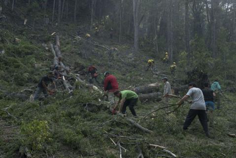 Mientras tanto, en El Manso y Villegas, vecinos y brigadistas trabajaron a destajo para poder hacer cortafuegos. En la zona de Cohuin-Co se voltearon árboles para que, en caso de que el fuego llegue, no se propague tan rápidamente y se pueda facilitar la labor de los trabajadores del Splif y Parques Nacionales.