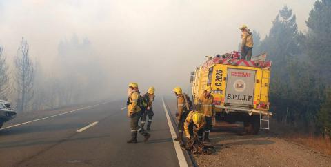 El combate del fuego es tanto por vía terrestre como aérea. Es un sector de mucha vegetación y pocas viviendas. En principio, esas casas se encuentran fuera de peligro. Están alejadas y además el fuerte viento lleva el fuego exactamente para el otro lado.