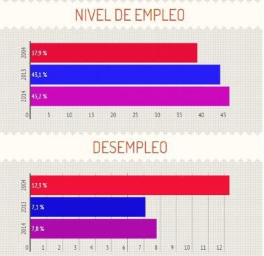 Un dato saliente de la encuesta indica que el desempleo creció entre 2013 y 2014 cuando pasó de 7,1 a 7,8 por ciento, cifras lejanas al 12,3 por ciento de desocupación que se registró en 2004, en otra medición realizada por el Indec.