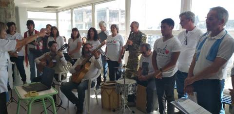 Emilia Giordana indicó que "es un placer festejar el cumpleaños del padre de la patria en el Hospital. La agrupación está formada por muchos cantores y músicos. Acá están Carlitos Casalla, Pablo Gabriel Sánchez, Juanjo Miraglia, Alexis Tellería, María Marta, Adriana Fonzo, la doctora Angaut, Ursula, Anita Montti, Ginny Jones, Nori Schulz, Tadeo Painefil, Marcelo Siñorelli, Carlos Bendstrup, Guillermo Giordana, Aldo Cárdenas, Diego Iraola y Adrián Porcel de Peralta".