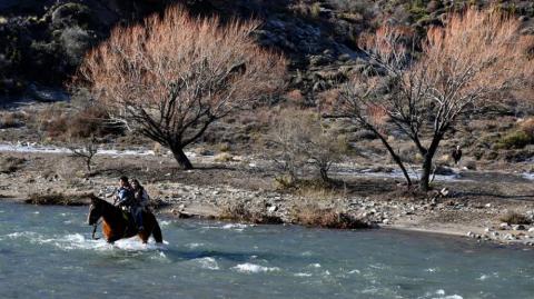 La odisea de pobladores de Cuyín Manzano que cruzan un río a caballo para salir del aislamiento