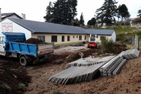 El cerco perimetral de alambre tejido del hogar de niños de Bariloche, que depende de la Secretaría de Niñez, Adolescencia y Familia (SENAF), está siendo cambiado por uno de premoldeado de hormigón que brindará mayor seguridad y privacidad de las niñas y niños que se encuentran alojados.