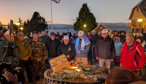 A las 8 en punto se encendió la fogata. No es un detalle menor: el fuego es parte del ritual que los veteranos de guerra de Malvinas sostienen año tras año, y esta vez el Centro Cívico de Bariloche fue el escenario de una vigilia que convocó a cientos de personas llegadas desde distintos puntos de la provincia.