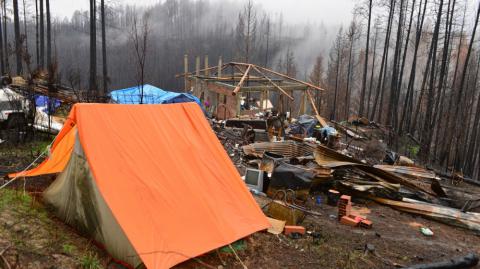 Todo a pulmón. Los damnificados de los incendios reconstruyen sus viviendas. Foto: Chino Leiva