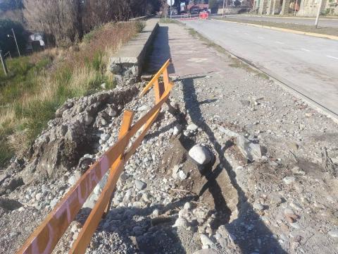 Luego de las intensas lluvias y la primera nevada del viernes (9/6) que cayó en la ciudad el socavón de Ruiz Moreno y su desembocadura en Costanera continúan deteriorándose; más allá de las medidas de prevención dispuestas por la Comuna, como el vallado de la mano sentido este-oeste, entre Ruiz Moreno y John O'Connor.