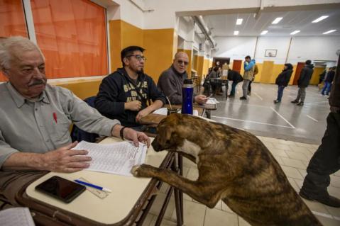 En la Escuela Primaria 315 del barrio Malvinas, un perro se llevó la mirada de los vecinos y vecinas que se acercaron a votar al momento de subirse a una de las mesas, “mirá quiere votar” se escuchó entre risas en una de las filas.