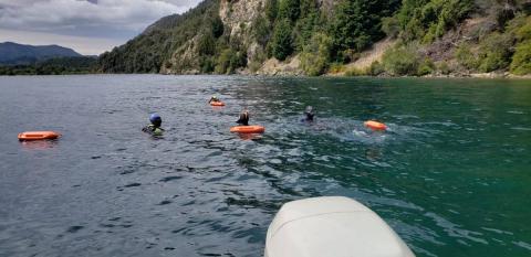 A bordo de semirrígidos particulares y de la Prefectura el operativo se extendió por más de cuatro horas, en un lago conocido por sus 112 metros de profundidad y con una temperatura que ronda los 8 grados en esta época del año.