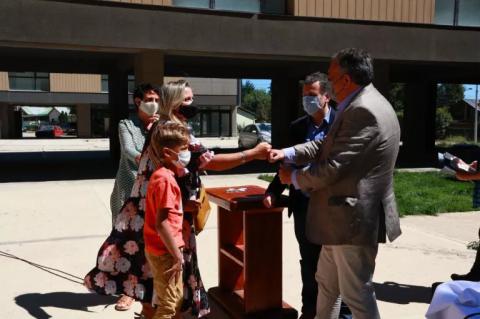 Además, en el acto que se realizó el viernes, se entregaron dos locales al Municipio para instalar allí dependencias de la comuna y se efectuó la entrega de créditos de la línea Casa Propia Construcción.