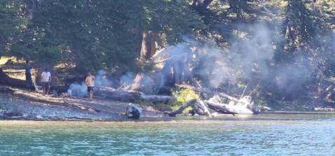 Uno de los casos se recibió a través de una denuncia de algunos visitantes, que registraron imágenes de un grupo con un fogón precario encendido en una zona no autorizada, en cercanías de la Isla Corazón, en el lago Mascardi.