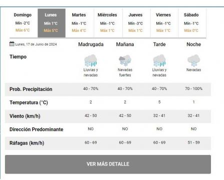 "En las zonas cordilleranas, se esperan nevadas de variada intensidad, algunas fuertes, con acumulados entre 30 y 45 centímetros, pudiendo ser superados puntualmente, sin descartar la ocurrencia de lluvia y nieve mezclada en zonas más bajas".