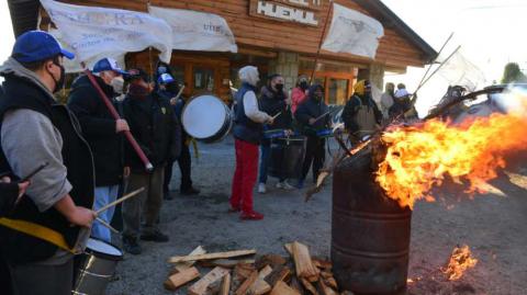 El sindicato gastronómico de Bariloche montó hoy una protesta con bombos, carteles y tachos con fuego en la puerta del hotel Huemul para denunciar que esa empresa incorporó trabajadores temporarios sólo en periodos de 15 días y con media jornada, lo cual recorta sus haberes a solo 15.000 pesos.