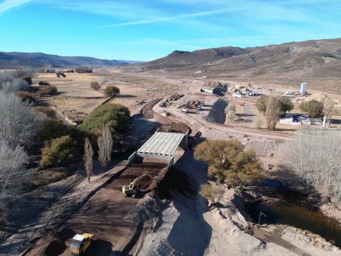 En las últimas semanas se desarrollaron tareas específicas entre las localidades de Comallo y Pilcaniyeu, que consistieron en la construcción de los dos puentes: uno sobre el arroyo Comallo y otro sobre las vías del tren patagónico. Asimismo, recientemente se llevaron a cabo tareas de hormigonado en la superficie de ambas estructuras, situadas a unos 500 metros de distancia, y continuaron los avances para la conformación del terraplén de acceso a la escuelita de Comallo.