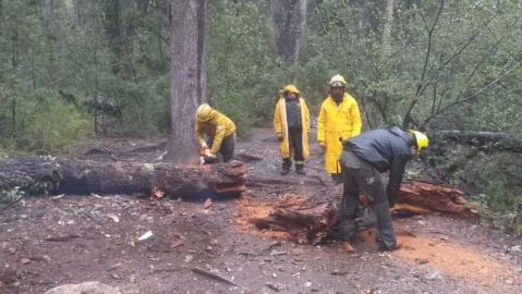 La Intendencia del Parque Nacional Nahuel Huapi informó que personal del Departamento de Incendios, Comunicaciones y Emergencias junto a los Guardaparques de la Unidad Operativa Centro del Parque Nacional, realizó tareas de poda preventiva en un árbol de riesgo en el ingreso a los senderos de Cascada los Duendes, Miradores, Frey y Muñoz en la Seccional Gutiérrez. De tal manera se habilita nuevamente las sendas en ese sector.