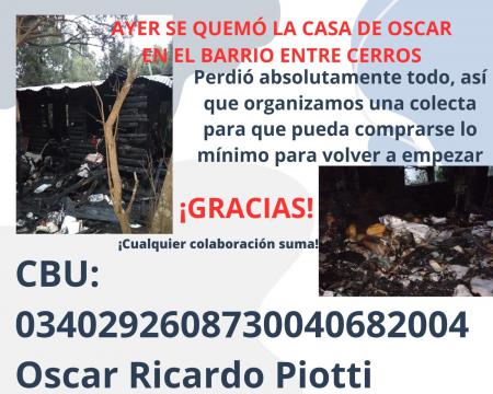 Tras el lamentable suceso, el hombre volverá a vivir con su hijo ya que comparten el terreno. Por otro lado, sus compañeros comenzaron una colecta para comenzar de nuevo. “Me ha llamado gente que no esperaba, gente con la que no tengo un vínculo muy estrecho me ha depositado plata, así que agradecido con todos”, confesó.