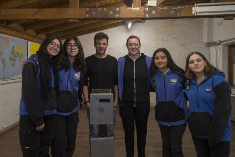 Kathleen Kennedy, alumna del quinto año, fue la encargada de dar los detalles del dispositivo: “esto está sustentado por un panel solar, cosa que no tenga ninguna conexión aparte. Nosotros usamos un módulo Wi Fi para simular el pedido de ayuda y que aparezca en la base, porque ahora no podíamos hacerlo con señal satelital”.