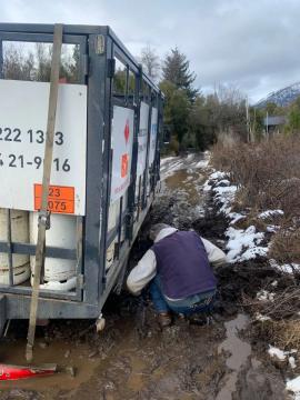 "Hay gente mayor trabajando y cavando, porque todavía no pueden sacar el camión que está muy enterrado desde las 11 de la mañana, tapando toda la entrada", concluyó Lucía.