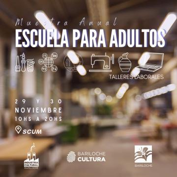 Comenzó la muestra anual de talleres laborales de las escuelas para adultos de Bariloche. El encuentro comenzó este martes y estará hasta el miércoles 30 de noviembre, de 10 a 20 horas, en el SCUM (Moreno y Villegas).