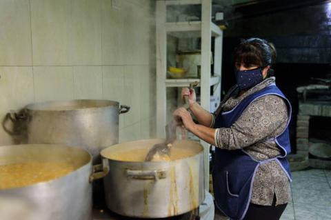 “Nosotros tomamos todos los recaudos para evitar cualquier tipo de contagio: tapabocas, material descartable, andamos con alcohol en gel, nos lavamos las manos continuamente, todo lo manipulamos con guantes”, destacó Raquel. Además, contó que son entre cuatro y cinco voluntarios, pero, por medidas de prevención, no pueden sumar más gente para cocinar y repartir.