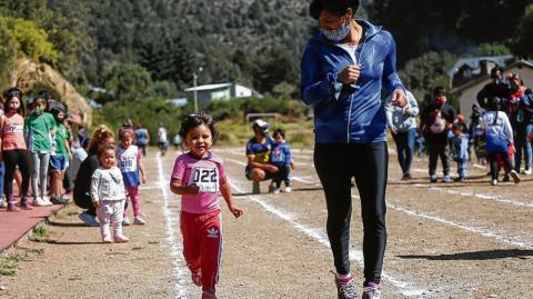 Minutos antes de las 14 del sábado pasado, las familias comenzaron a reunirse en la pista de atletismo del kilómetro 6 de la avenida Bustillo. El regreso a las carreras de calle reunió a más de 230 atletas expectantes por retomar la actividad.