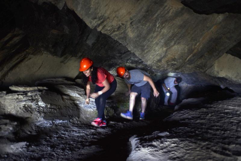 La excursión al cerro Leones, en Dina Huapi, combina el descenso a una caverna a 130 metros de profun ...