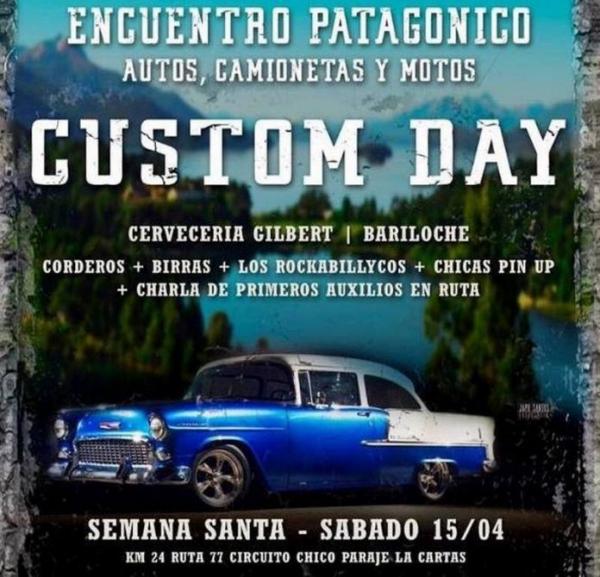En este Custom Day en la Patagonia participará gente de Cipolletti, General Roca, Lago Puelo, Bolsón entre otros, reuniéndose a la mañana para salir en caravana hacia la cervecería Gilbert, realizando un recorrido, desde el Llao Llao, pasando previamente por el Circuito Chico. Allí se podrá disfrutar de la exposición de estos vehículos acompañado de una oferta gastronómica variada (corderos, bondiolas, carnes varias) y cerveza artesanal.